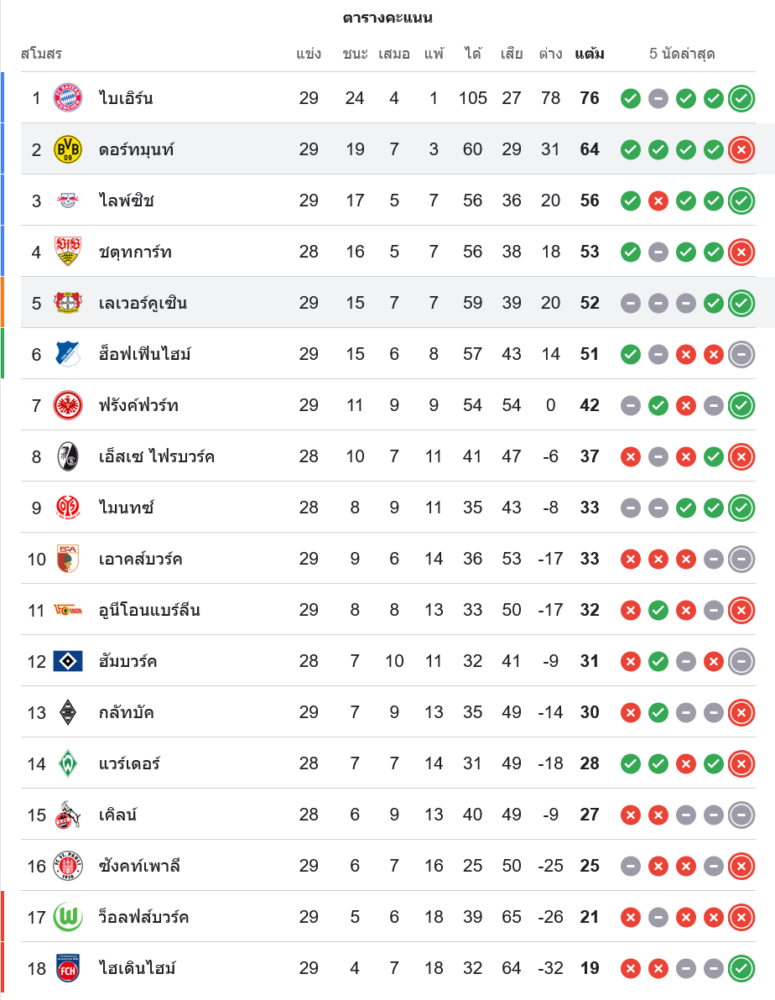 สถานการณ์ในตารางคะแนนบุนเดสลีกา