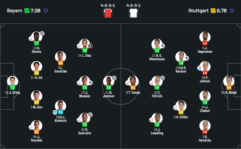 - นักเตะเด่น : โยชัว คิมมิช 8.2 , หลุยส์ ดิอาซ 7.9 , อัลฟอนโซ เดวีส์ 7.7
