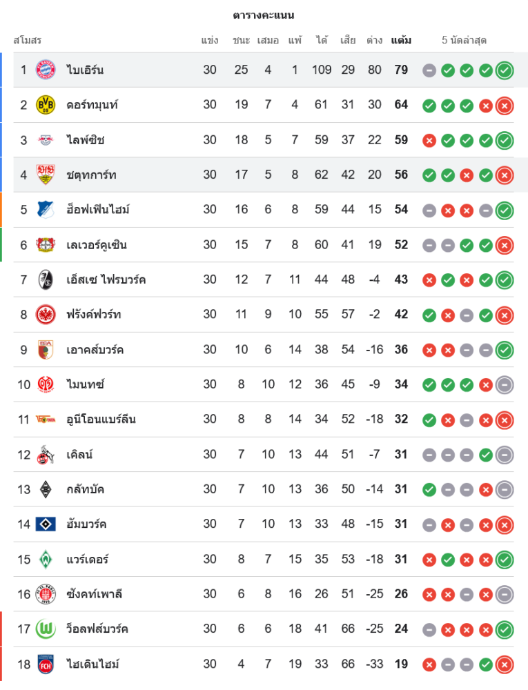 สถานการณ์ในตารางคะแนนบุนเดสลีกา