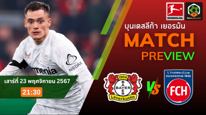 วิเคราะห์บอลบุนเดสลีกา 2024 ระหว่าง ไบเออร์ เลเวอร์คูเซิน พบ ไฮน์เดนเฮลม์ 23/11/67
