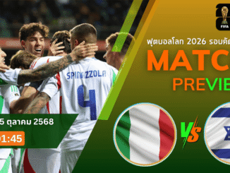 อิตาลีเปิดบ้านดวลอิสราเอล ศึกคัดบอลโลก 2026 กลุ่ม I เกมชี้ชะตาสุดเดือด เช็กความพร้อมตัวจริง ฟอร์มล่าสุด และมุมมองฟันธงจาก บ้านกีฬา อัปเดต ราคาบอล และไทม์ไลน์ใน โปรแกรมบอลวันนี้ ครบทุกประเด็นก่อนเกมใหญ่คืนนี้