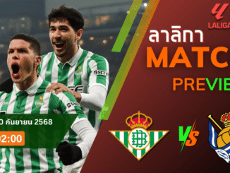 ศึกใหญ่ลาลีกา เรอัล เบติส ปะทะ เรอัล โซเซียดาด คืนนี้ 20 ก.ย. 2568 เวลา 02:00 วิเคราะห์ความพร้อม สถิติ ฟอร์มล่าสุด พร้อม ทีเด็ดบอลวันนี้ และราคาบอลสุดดุเดือด เช็กตารางแข่งบอลก่อนใครที่ บ้านกีฬา