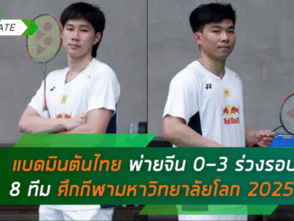 ทีมแบดมินตันไทยพ่ายรองแชมป์เก่าจีน 0-3 คู่ ตกรอบ 8 ทีมสุดท้าย ศึกกีฬามหาวิทยาลัยโลก 2025 ที่เยอรมนี แม้สู้สุดใจแต่ต้านความแข็งแกร่งไม่ไหว ติดตามข่าวกีฬาเข้มข้นได้ที่ บ้านกีฬา