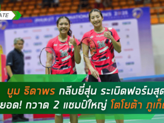 บูม ธิดาพร กลีบยี่สุ่น โชว์ฟอร์มสุดยอด คว้า 2 แชมป์ ในการแข่งขัน โตโยต้า ภูเก็ต อินเตอร์เนชั่นแนล ซีรีส์ 2025 ทั้งประเภทหญิงเดี่ยวและหญิงคู่ สร้างความภูมิใจให้กับวงการแบดมินตันไทย
