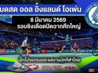 ดูแบดสด ออล อิงแลนด์ โอเพ่น 8 มีนาคม 2569 รอบชิงเดือดปิดฉากศึกใหญ่ เช็กโปรแกรมและผลงานนักกีฬาไทย