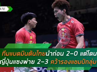 ทีมแบดมินตันไทยนำก่อน 2-0 แต่พ่ายให้กับญี่ปุ่น 2-3 คู่ คว้ารองแชมป์กลุ่มซี ศึกแบดมินตันทีมผสมเอเชีย 2025 พร้อมลุ้นรอบ 8 ทีมสุดท้าย พบ เกาหลีใต้ ติดตามได้ที่ บ้านกีฬา