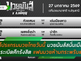 โปรแกรมมวยไทยวันนี้ ศึกมวยมันส์สนั่นเมือง X ภ.หลักบุญ ที่เวทีมวยนานาชาติรังสิต วันอังคารที่ 27 มกราคม 2569 เช็กตารางคู่มวย ช่องถ่ายทอดสด True4U และลิ้งก์ดูมวยสดผ่าน BANKEELA พร้อมอัปเดตผลมวยไทย ข่าวมวยไทย และวิเคราะห์คู่เดือดแบบเข้มข้นสำหรับแฟนมวยตัวจริงที่ บ้านกีฬา