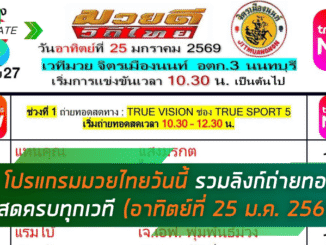 ศึกเดือดทุกจอ! โปรแกรมมวยไทยวันนี้ รวมลิงก์ถ่ายทอดสดครบทุกเวที (อาทิตย์ที่ 25 ม.ค. 2569)