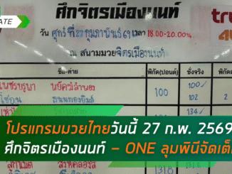 โปรแกรมมวยไทยวันนี้ 27 ก.พ. 2569 ศึกจิตรเมืองนนท์-ONE ลุมพินีจัดเต็มพร้อมลิ้งก์ดูมวยสด