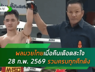 ผลมวยไทยเมื่อคืนเดือดสะใจ 28 ก.พ. 2569 รวมครบทุกศึกดัง จ้าวมวยไทย RWS เกียรติเพชร ทรูโฟร์ยู และวิถีถิ่นไทย