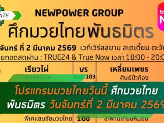 โปรแกรมมวยไทยวันนี้ ศึกมวยไทยพันธมิตร วันจันทร์ที่ 2 มีนาคม 2569 เริ่ม 18.00 น. เวทีมวยเวิลด์สยาม ตะวันนา บางกะปิ ถ่ายทอดสด True4U พร้อมลิ้งก์ดูมวยออนไลน์ผ่าน BANKEELA รวมคู่ชกครบทุกไฟต์ในหน้าเดียว