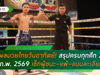 ผลมวยไทยเดือดสนั่นวันอาทิตย์! สรุปครบทุกศึก 22 ก.พ. 2569 – เช็กชื่อผู้ชนะ-แพ้-น็อก-เสมอแบบละเอียด
