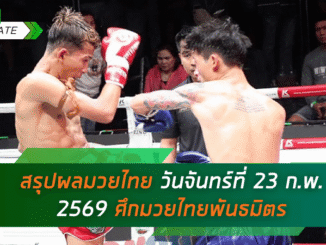 ผลมวยไทยเมื่อคืนเดือดจัด! สรุปผลมวยไทย วันจันทร์ที่ 23 ก.พ. 2569 ศึกมวยไทยพันธมิตร—น็อกกันรัว คะแนนก็มีดราม่า