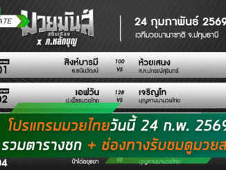โปรแกรมมวยไทยวันนี้ 24 ก.พ. 2569 เดือดครบทุกคู่! รวมตารางชก + ช่องทางรับชมดูมวยสดอัปเดตล่าสุด