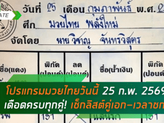 โปรแกรมมวยไทยวันนี้ 25 ก.พ. 2569 เดือดครบทุกคู่! เช็กลิสต์คู่เอก-เวลาชก พร้อมทางลัดดูสดถึงบ้าน