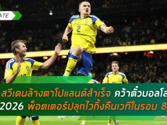 สวีเดนล้างตาโปแลนด์สำเร็จ ผงาดคว้าตั๋วบอลโลก 2026 พ็อตเตอร์ปลุกไวกิ้งคืนเวทีโลกในรอบ 8 ปี
