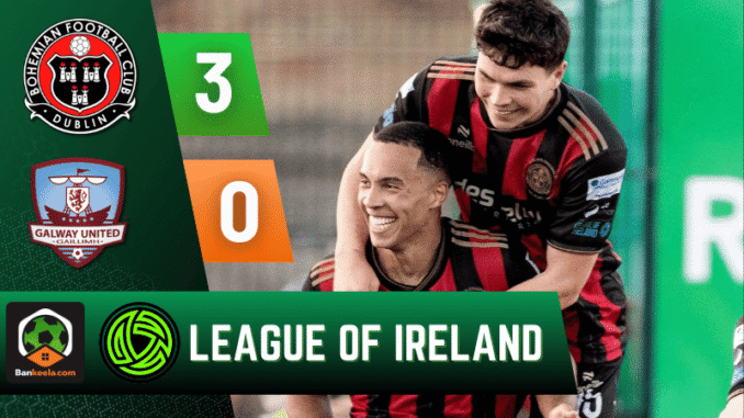 บ้านผลบอล สรุปหลังเกม ไอร์แลนด์ พรีเมียร์ ลีก โบฮีเมี่ยนส์ โชว์ฟอร์มโหดไล่ถล่ม กัลเวย์ ยูไนเต็ด 3-0 กระชากแต้มไล่จี้จ่าฝูงเดือด!
