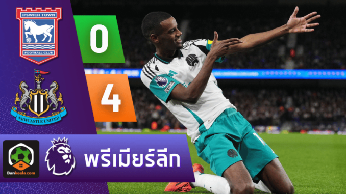 บ้านผลบอล สรุปผล นิวคาสเซิ่ล ยูไนเต็ด ถล่ม อิปสวิช ทาวน์ 4-0 ฟอร์มโหด พรีเมียร์ลีก 2024