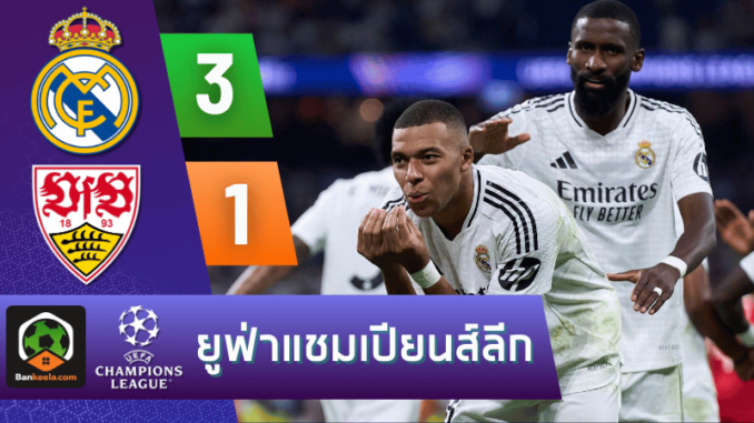 ผลบอลยูฟ่าแชมเปียนส์ลีก 2024 ระหว่าง เรอัล มาดริด 3-1 สตุ๊ตการ์ต วันนี้ 18/9/67
