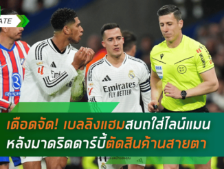 เดือดกลางสนาม! จู๊ด เบลลิงแฮม สบถใส่ไลน์แมนอย่างรุนแรงหลังไม่พอใจคำตัดสินลูกทุ่มในเกม เรอัล มาดริด เสมอ แอตเลติโก มาดริด 1-1 ไมค์ข้างสนามจับเสียงชัด มีลุ้นโดนลงโทษย้อนหลัง