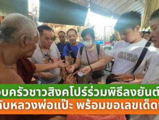 ครอบครัวชาวสิงคโปร์ร่วมพิธีลงยันต์หลังมือกับหลวงพ่อแป๊ะ พร้อมขอเลขเด็ดจาก “ท้าวเวสสุวรรณ”