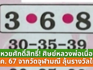 เปิดโพยหวยศักดิ์สิทธิ์! เลขเด็ด ศิษย์หลวงพ่อเนื่อง จากวัดจุฬามณี งวด 1 ธันวาคม 2567 แจกเลขเด่นและเลขท้ายสองตัวที่น่าลุ้นที่สุดในงวดนี้
