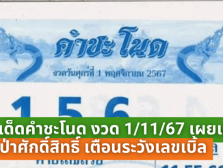 เลขเด็ดคำชะโนด งวด 1/11/67 เผยเลขนำโชคจากป่าศักดิ์สิทธิ์ เตือนระวังเลขเบิ้ลอาจมาแรง