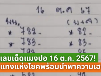 เผยเลขเด็ดแมงปอ 16 ตุลาคม 2567! ลายแทงแห่งโชคลาภพร้อมนำพาความเฮง เสี่ยงดวงงวดนี้ห้ามพลาด