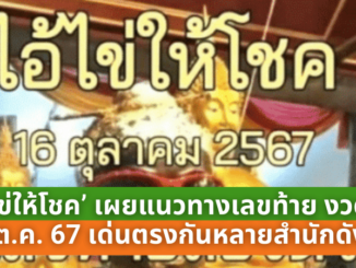 ลุ้นเลขเด็ด! ‘ไอ้ไข่ให้โชค’ เผยแนวทางเลขท้าย งวด 16 ต.ค. 67 เลข 8 เด่นตรงกันหลายสำนักดัง