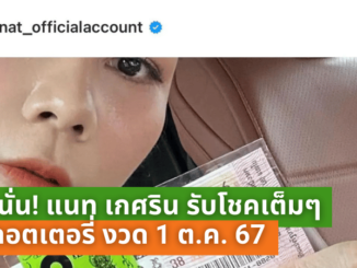 เฮสนั่น! แนท เกศริน รับโชคเต็มๆ ถูกลอตเตอรี่ งวด 1 ต.ค. 67 พร้อมเผยเคล็ดลับเสริมดวงสุดปัง