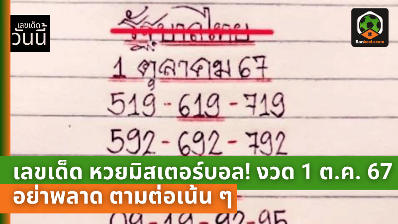 เลขเด็ด หวยมิสเตอร์บอล! งวด 1 ต.ค. 67 อย่าพลาด ตามต่อเน้น ๆ หลังงวดที่แล้วสองตัวท้ายแตกเต็ม ๆ