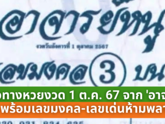 เลขเด็ดมาแล้ว! แนวทางหวยงวด 1 ต.ค. 67 จาก ‘อาจารย์หนู’ พร้อมเลขมงคล-เลขเด่นห้ามพลาด