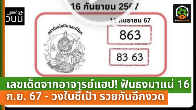 เลขเด็ดจากอาจารย์แฮป! ฟันธงมาแน่ 16 ก.ย. 67 – วงในชี้เป้า รวยกันอีกงวด