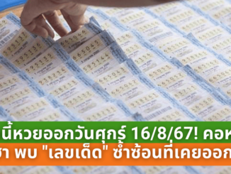 งวดนี้หวยออกวันศุกร์ 16/8/67! คอหวยฮือฮา พบ “เลขเด็ด” ซ้ำซ้อนที่เคยออกแล้วถึง 2 รอบ