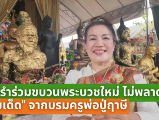 นางรำจิตอาสาร่วมขบวนพระบวชใหม่ ไม่พลาดขอ “เลขเด็ด” จากบรมครูพ่อปู่ฤาษี