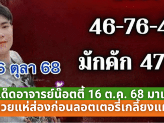เลขเด็ดอาจารย์น๊อตตี้ 16 ต.ค. 68 มาแรง! คอหวยแห่ส่องก่อนลอตเตอรี่เกลี้ยงแผง
