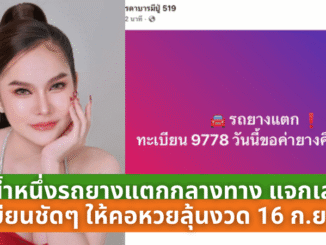 แม่น้ำหนึ่งระทึก! รถยางแตกกลางทาง แจกเลขทะเบียนชัดๆ ให้คอหวยลุ้นงวด 16 กันยายน 2568