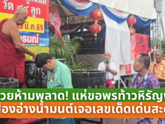 คอหวยห้ามพลาด! แห่ขอพรท้าวหิรัญพนาสูร ส่องอ่างน้ำมนต์เจอเลขเด็ดเด่นสะดุดตา