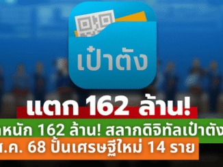 แตกหนัก 162 ล้าน! สลากดิจิทัลเป๋าตัง 16 ส.ค. 68 ปั้นเศรษฐีใหม่ 14 ราย