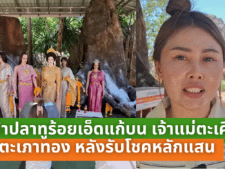 แม่ค้าปลาทูร้อยเอ็ดแก้บนเจ้าแม่ตะเคียนทอง-ทิพย์ วัดภูตะเภาทอง หลังรับโชคหลักแสน ได้เลขเด็ด 416, 419 และ 852 ลุ้นงวด 16/8/68 คอหวยแห่ตามแนวทาง