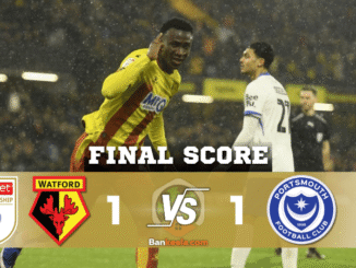 ผลบอลสด แชมเปี้ยนชิพ ระหว่าง วัตฟอร์ด 1-1 พอร์ทสมัธ วันนี้ 22/1/69