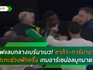 ไฟแลบกลางเบร์นาเบว! ซาก้า-การ์บาฆาล ปะทะเดือดช่วงพักครึ่ง เกมอาร์เซน่อลบุกสยบมาดริด