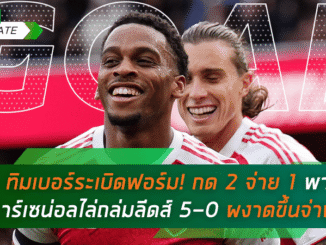 อาร์เซน่อลเปิดบ้านถล่มลีดส์ 5-0 ขึ้นจ่าฝูงพรีเมียร์ลีก ทิมเบอร์ระเบิดฟอร์มกด 2 จ่าย 1 เรตติ้งเต็ม 10 จาก Whoscored พร้อมสถิติสุดโหด อ่านบทวิเคราะห์เข้มข้นได้ที่ บ้านกีฬา