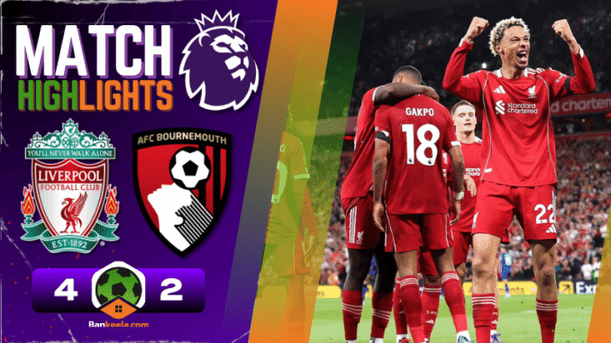 ไฮไลท์บอลวันนี้! ลิเวอร์พูล เปิดหัวพรีเมียร์ลีกถล่ม บอร์นมัธ 4-2 ‘บ้านกีฬา’ พาเจาะลึก ผลบอลสด พร้อมสถิติครบ เกมรุกดุดัน-จบสกอร์เฉียบ
