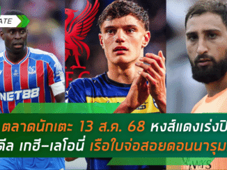 อัปเดตข่าวตลาดนักเตะ 13 ส.ค. 68 ลิเวอร์พูลเร่งคว้าเกฮี-เลโอนี่ พร้อมลุ้นปิดดีลอิซัค แมนฯ ซิตี้จ่อซิวดอนนารุมม่าหากเสียเอแดร์ซอน และความเคลื่อนไหวดีลใหญ่จากยุโรป ติดตามที่ บ้านกีฬา
