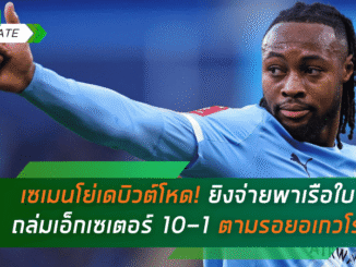เซเมนโย่เดบิวต์โหด! ยิงจ่ายพาเรือใบถล่มเอ็กเซเตอร์ 10-1 ตามรอยอเกวโร่