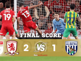 ผลบอลสด อีเอฟแอลแชมเปียนชิป ระหว่าง มิดเดิลสโบรห์ 2-1 เวสต์ บรอมมิช อัลเบียน วันนี้ 20/9/68