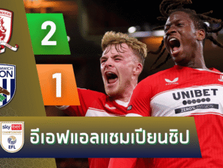 บ้านผลบอล สรุปหลังเกม แชมเปียนชิป อังกฤษ เดือด! เดวิด สเตรเลช กดนำ มิดเดิลสโบรห์ เฉือน เวสต์บรอม 2-1 ขึ้นจ่าฝูงสุดมันส์