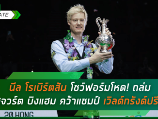 นีล โรเบิร์ตสัน โชว์ฟอร์มโหด! อัด สจวร์ต บิงแฮม 10-0 คว้าแชมป์ เวิลด์กรังด์ปรีซ์ 2025 อย่างยิ่งใหญ่ พร้อมรับเงินรางวัล 180,000 ปอนด์ ติดตามข่าวสารสนุกเกอร์เพิ่มเติมได้ที่ บ้านกีฬา