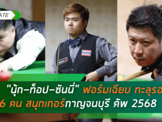 “นุ้ก-ท็อป-ซันนี่” ฟอร์มเฉียบ ทะลุรอบ 16 คน สนุกเกอร์กาญจนบุรี คัพ 2568